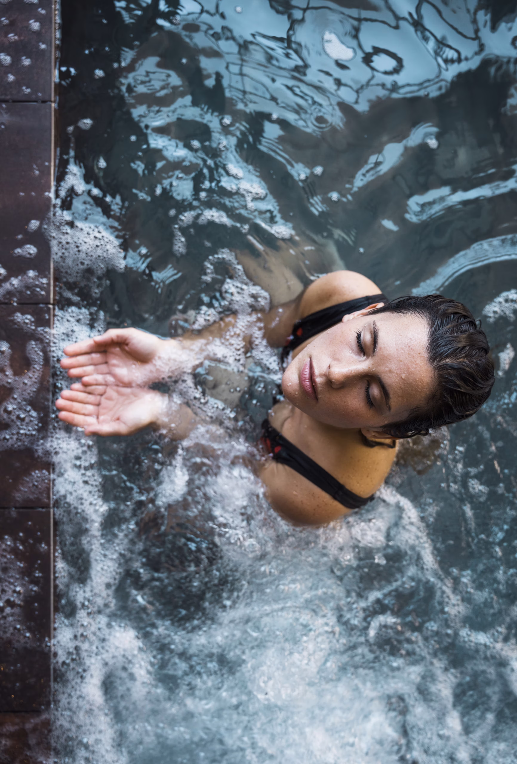 Float therapy is a wellness experience where a person floats in warm water filled with salt. The salt helps the body float easily, without effort.